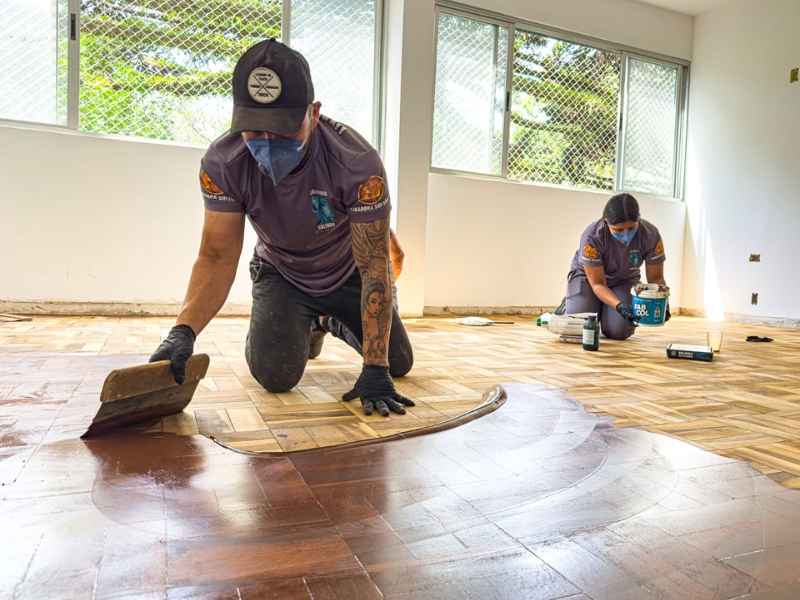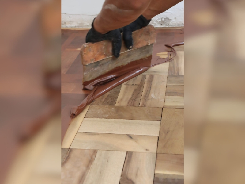 Cola expansiva, com diferentes tonalidades,chegando mais próxima a cor da madeira. Ajudando no rejuntamento de frestas,assim melhorando a qualidade no acabamento.Por ser expansiva,em alguns pisos pode obter um rejunte em torno de 99%, ajudando na fixação do piso. Mas recomendado para pisos com frestas mais abertas.